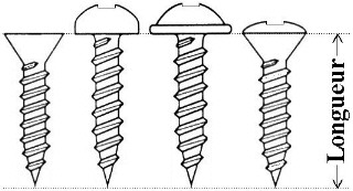 La longueur d'une vis se mesure de la pointe à la base de la partie la plus large de la tête, elle s'exprime en mm.